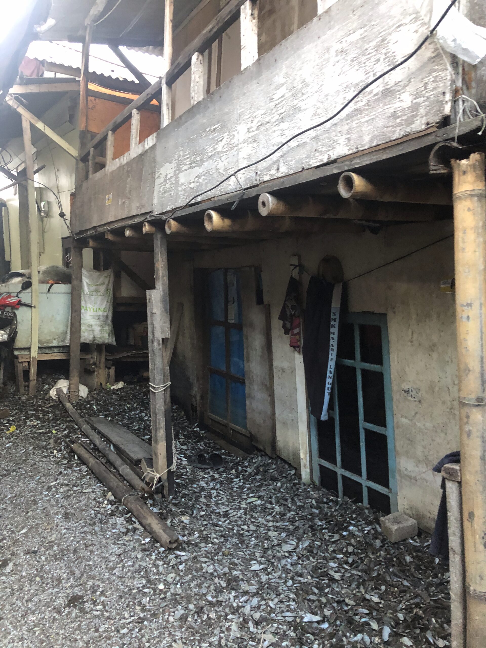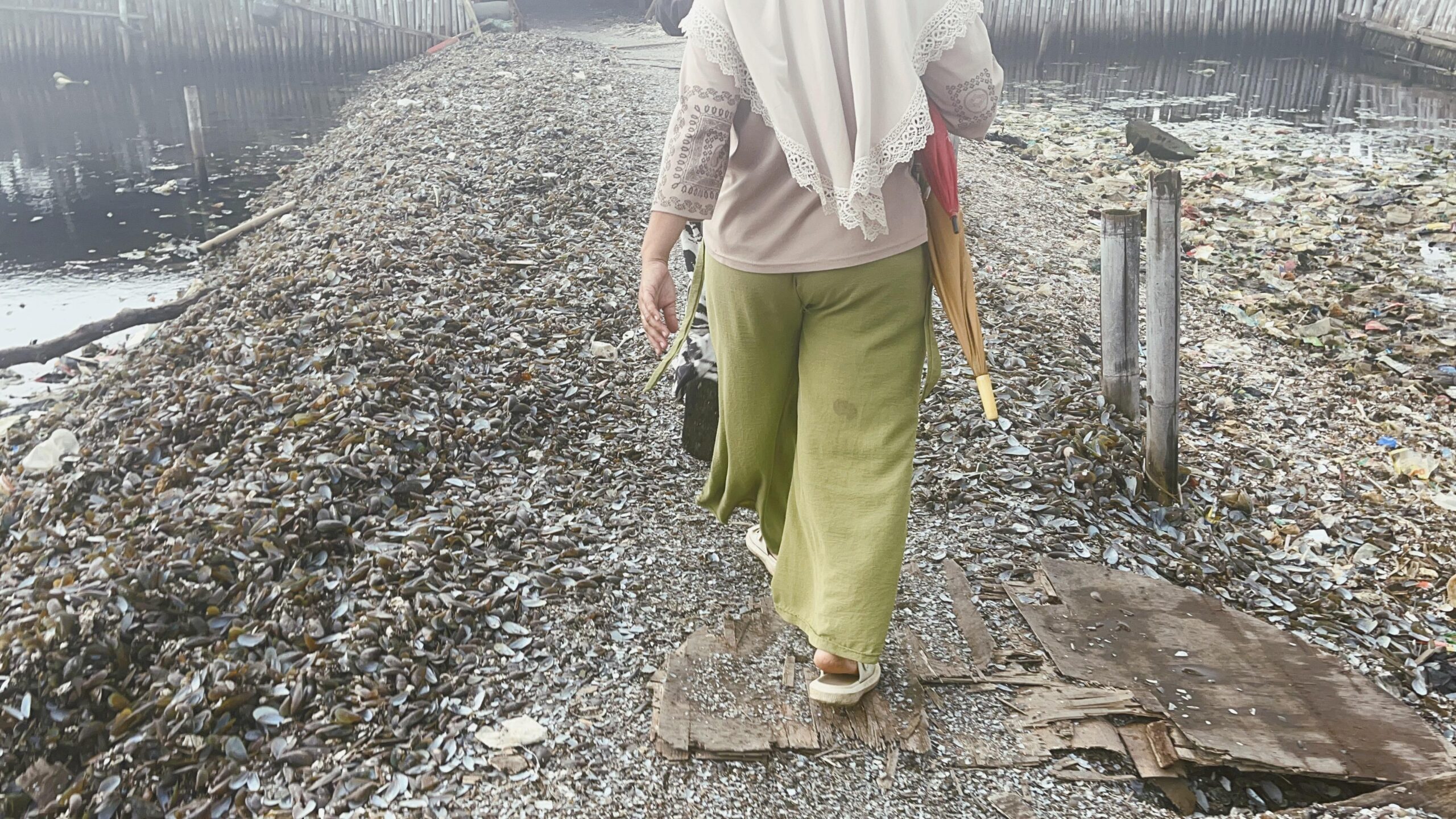 Di Kampung Empang, ketika biaya tanah untuk pengurukan semakin tidak terjangkau, limbah kerang menjadi alternatif murah untuk meninggikan lantai dan jalan. “Padahal itu sudah ditambah (limbah-read) kerang ijo juga, masih mahal banget”,” katanya.