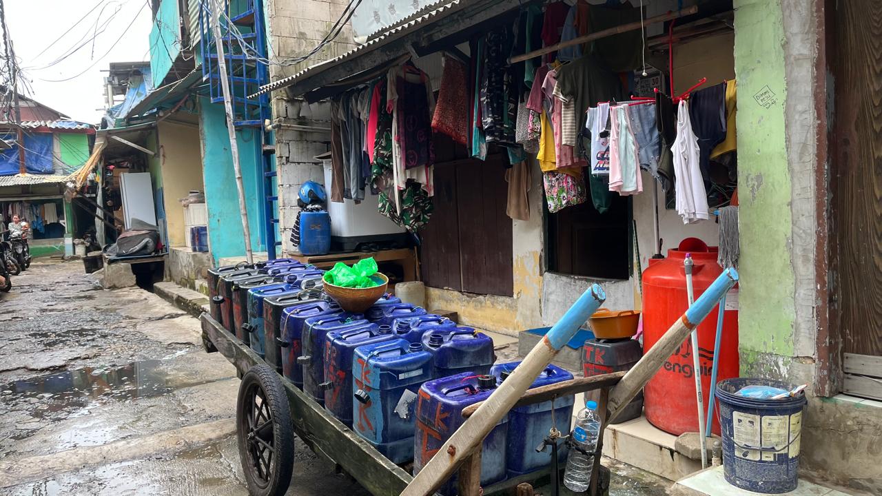 Sehari, keluarganya bisa menghabiskan tiga jeriken. Sebulan dia sekeluarga merogoh kocek Rp300 hingga Rp450 ribu hanya untuk mandi dan mencuci. Untuk minum, setiap galon berharga Rp8.000. “Kalau lagi mens atau pas hamil, bisa lebih banyak,” katanya.